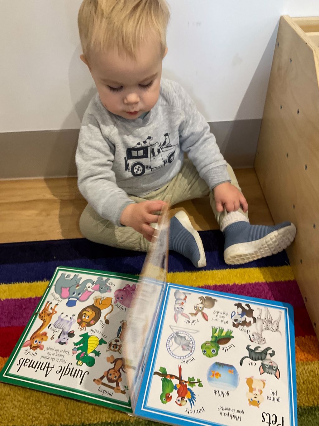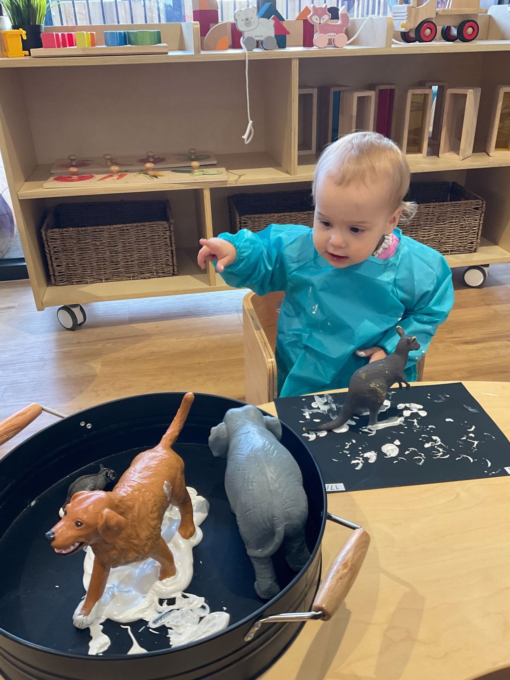 In the honeybees room we did this by observing the children showing interest in animals and a few of our families have been going to the zoo. So we took this information and developed a art experience where children engaged in animal print painting.